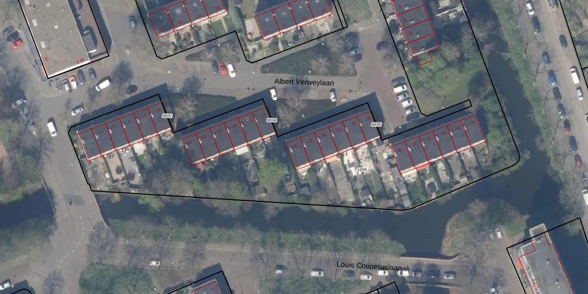 Het perceel waarop Albert Verweylaan 26 staat heeft een oppervlakte van 5842 m². Dit is een zeer groot perceel. De perceeloppervlakte wordt geregistreerd door het Kadaster. Gedetailleerde informatie over de maten van dit perceel kunt u vinden in het rapport Kadastrale kaart met maatvoering van Albert Verweylaan 26.