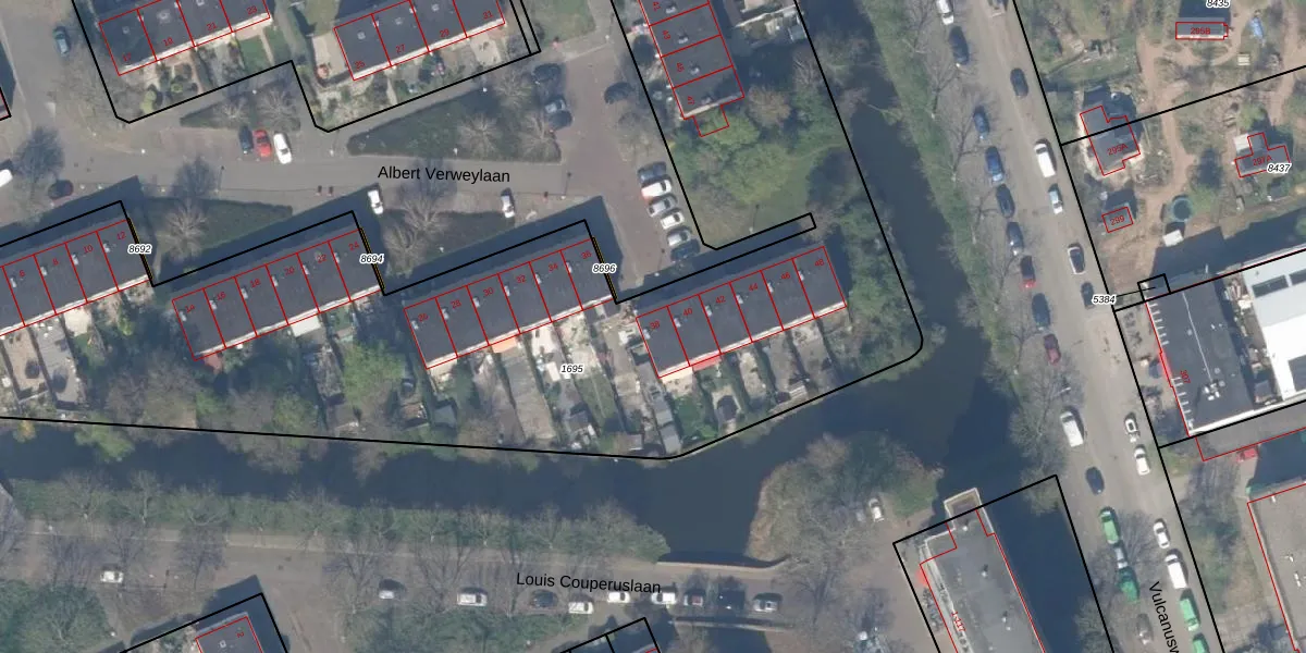 Het perceel waarop Albert Verweylaan 38 staat heeft een oppervlakte van 5842 m². Dit is een zeer groot perceel. De perceeloppervlakte wordt geregistreerd door het Kadaster. Gedetailleerde informatie over de maten van dit perceel kunt u vinden in het rapport Kadastrale kaart met maatvoering van Albert Verweylaan 38.
