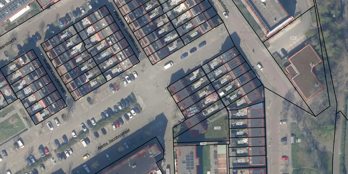 Gebruik de zoekbalk of klik op een perceel voor informatie over de adressen binnen dit perceel.