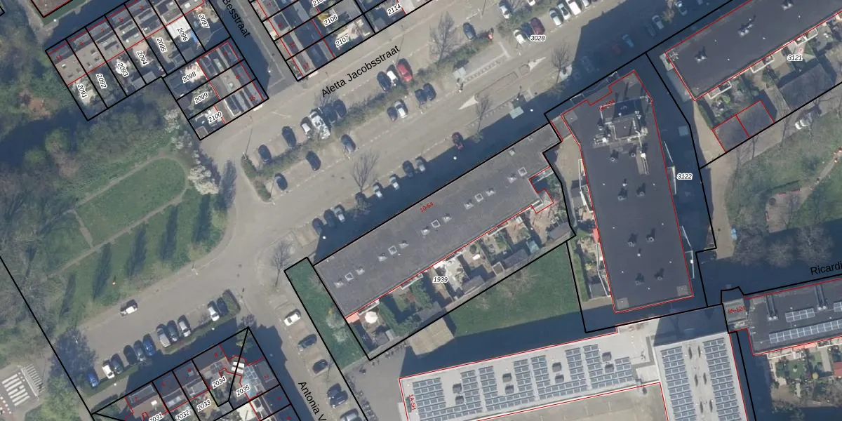 Het perceel waarop Aletta Jacobsstraat 42 staat heeft een oppervlakte van 1593 m². Dit is een zeer groot perceel. De perceeloppervlakte wordt geregistreerd door het Kadaster. Gedetailleerde informatie over de maten van dit perceel kunt u vinden in het rapport Kadastrale kaart met maatvoering van Aletta Jacobsstraat 42.