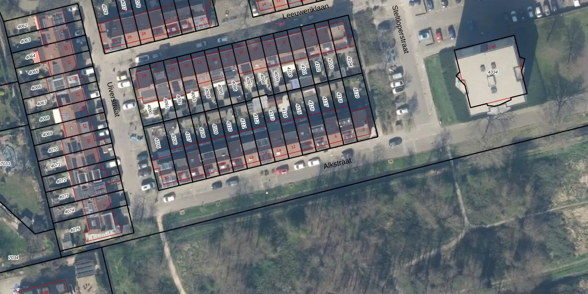 Gebruik de zoekbalk of klik op een perceel voor informatie over de adressen binnen dit perceel.
