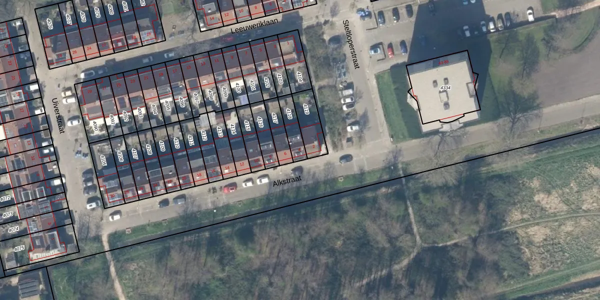Het perceel waarop Alkstraat 4 staat heeft een oppervlakte van 107 m². Dit is een middelgroot perceel. De perceeloppervlakte wordt geregistreerd door het Kadaster. Gedetailleerde informatie over de maten van dit perceel kunt u vinden in het rapport Kadastrale kaart met maatvoering van Alkstraat 4.