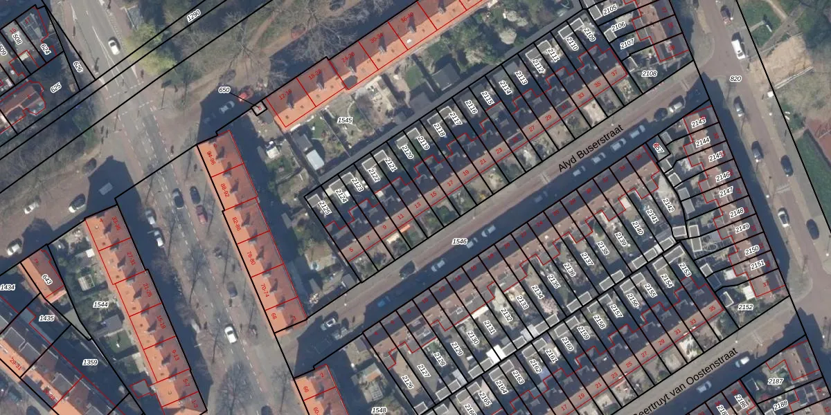 Gebruik de zoekbalk of klik op een perceel voor informatie over de adressen binnen dit perceel.