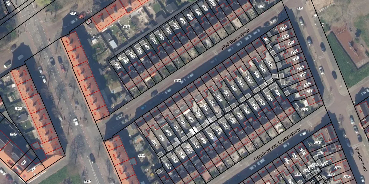 Gebruik de zoekbalk of klik op een perceel voor informatie over de adressen binnen dit perceel.