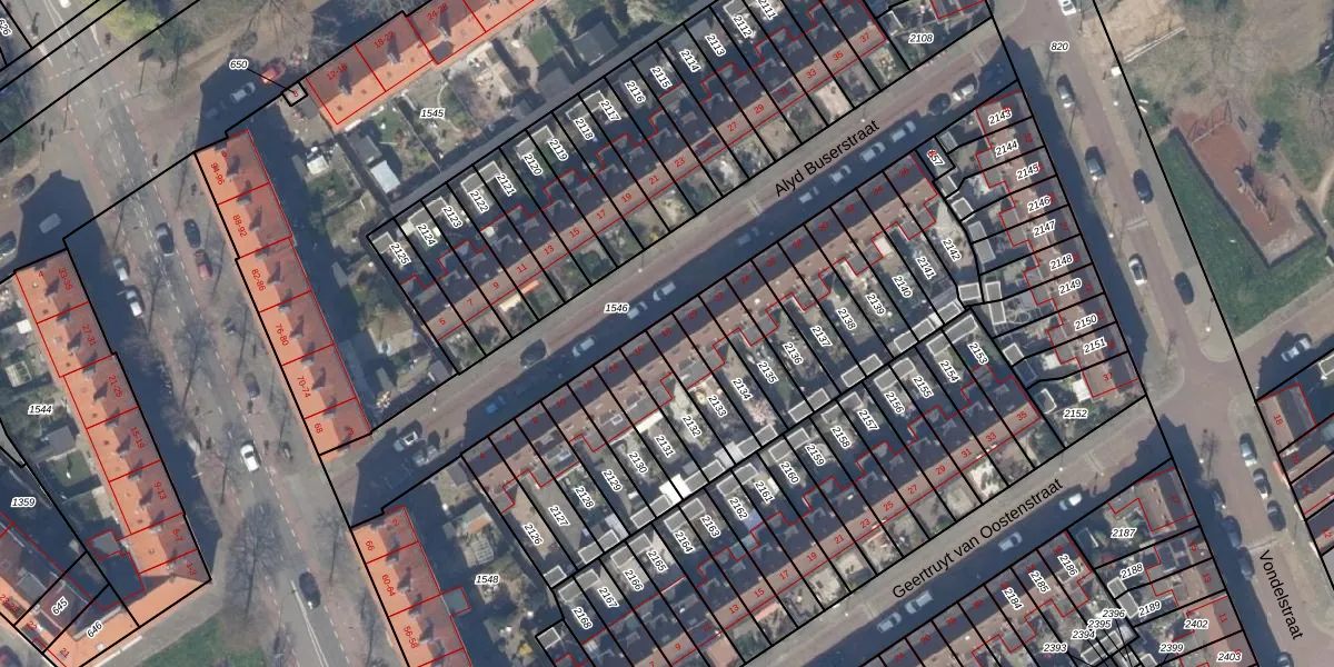 Het perceel waarop Alyd Buserstraat 18 staat heeft een oppervlakte van 116 m². Dit is een middelgroot perceel. De perceeloppervlakte wordt geregistreerd door het Kadaster. Gedetailleerde informatie over de maten van dit perceel kunt u vinden in het rapport Kadastrale kaart met maatvoering van Alyd Buserstraat 18.