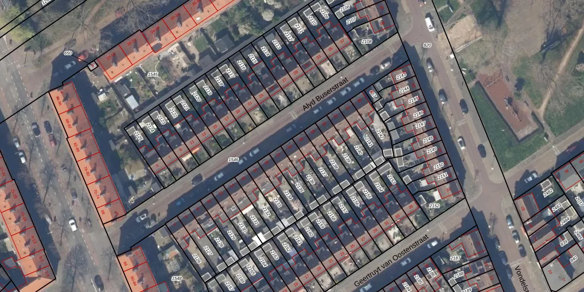 Het perceel waarop Alyd Buserstraat 24 staat heeft een oppervlakte van 117 m². Dit is een middelgroot perceel. De perceeloppervlakte wordt geregistreerd door het Kadaster. Gedetailleerde informatie over de maten van dit perceel kunt u vinden in het rapport Kadastrale kaart met maatvoering van Alyd Buserstraat 24.