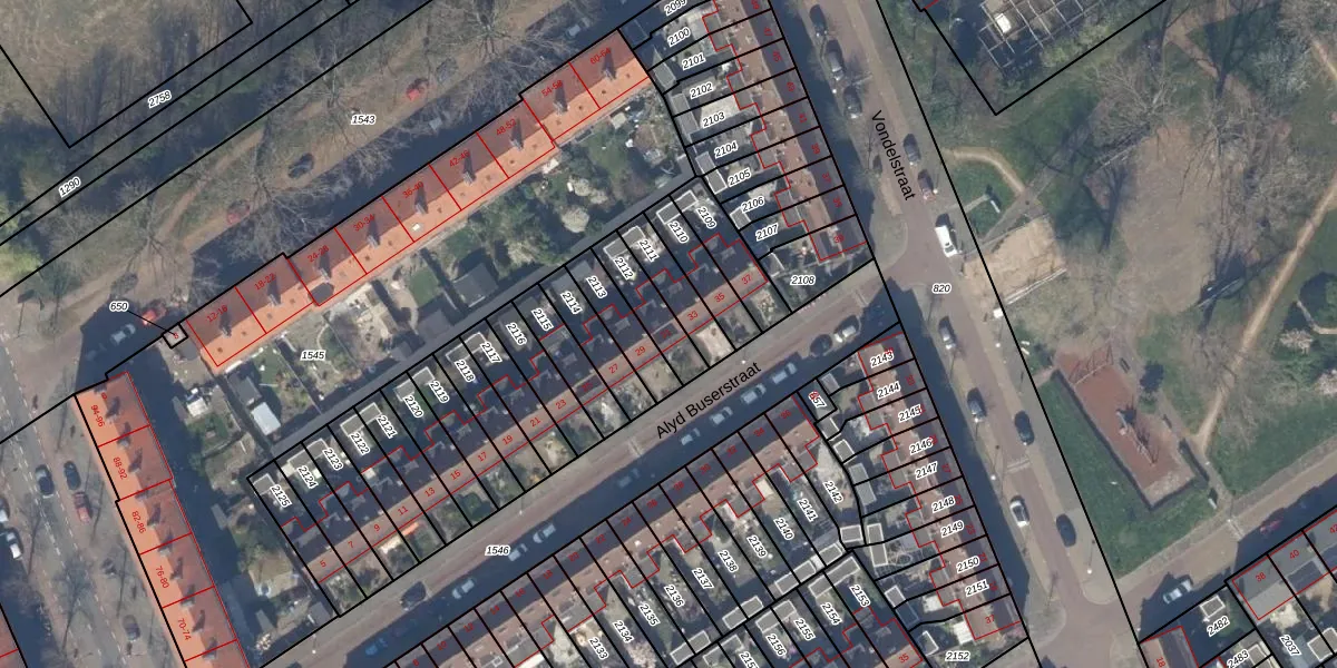 Gebruik de zoekbalk of klik op een perceel voor informatie over de adressen binnen dit perceel.