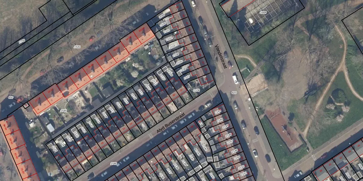 Gebruik de zoekbalk of klik op een perceel voor informatie over de adressen binnen dit perceel.