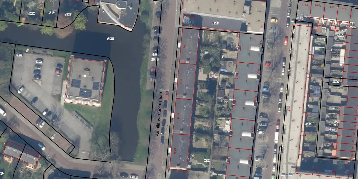 Amalia van Solmslaan 10 is gelegen op kadastraal perceel DEL00A9056. Deze kadastrale aanduiding is uniek en wordt gebruikt door het Kadaster om eigendomsrechten en andere zakelijke rechten vast te leggen. Het perceel maakt onderdeel uit van de kadastrale gemeente Delft.
