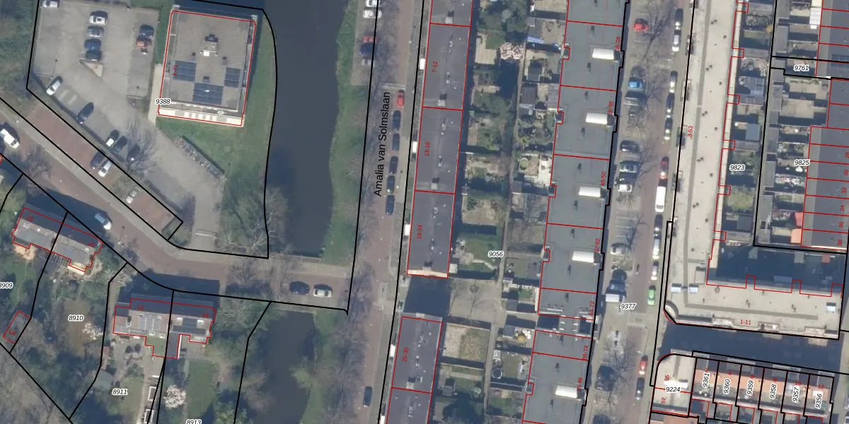 Amalia van Solmslaan 20 is gelegen op kadastraal perceel DEL00A9056. Deze kadastrale aanduiding is uniek en wordt gebruikt door het Kadaster om eigendomsrechten en andere zakelijke rechten vast te leggen. Het perceel maakt onderdeel uit van de kadastrale gemeente Delft.