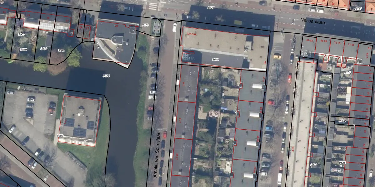 Amalia van Solmslaan 6 is gelegen op kadastraal perceel DEL00A9056. Deze kadastrale aanduiding is uniek en wordt gebruikt door het Kadaster om eigendomsrechten en andere zakelijke rechten vast te leggen. Het perceel maakt onderdeel uit van de kadastrale gemeente Delft.