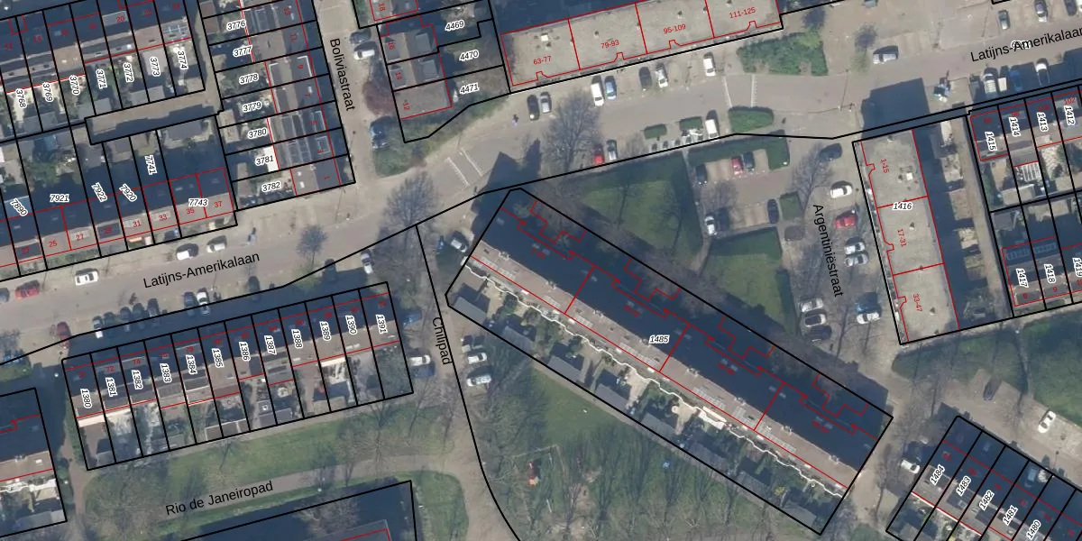 Argentiniëstraat 14 is gelegen op kadastraal perceel DEL00S1485. Deze kadastrale aanduiding is uniek en wordt gebruikt door het Kadaster om eigendomsrechten en andere zakelijke rechten vast te leggen. Het perceel maakt onderdeel uit van de kadastrale gemeente Delft.