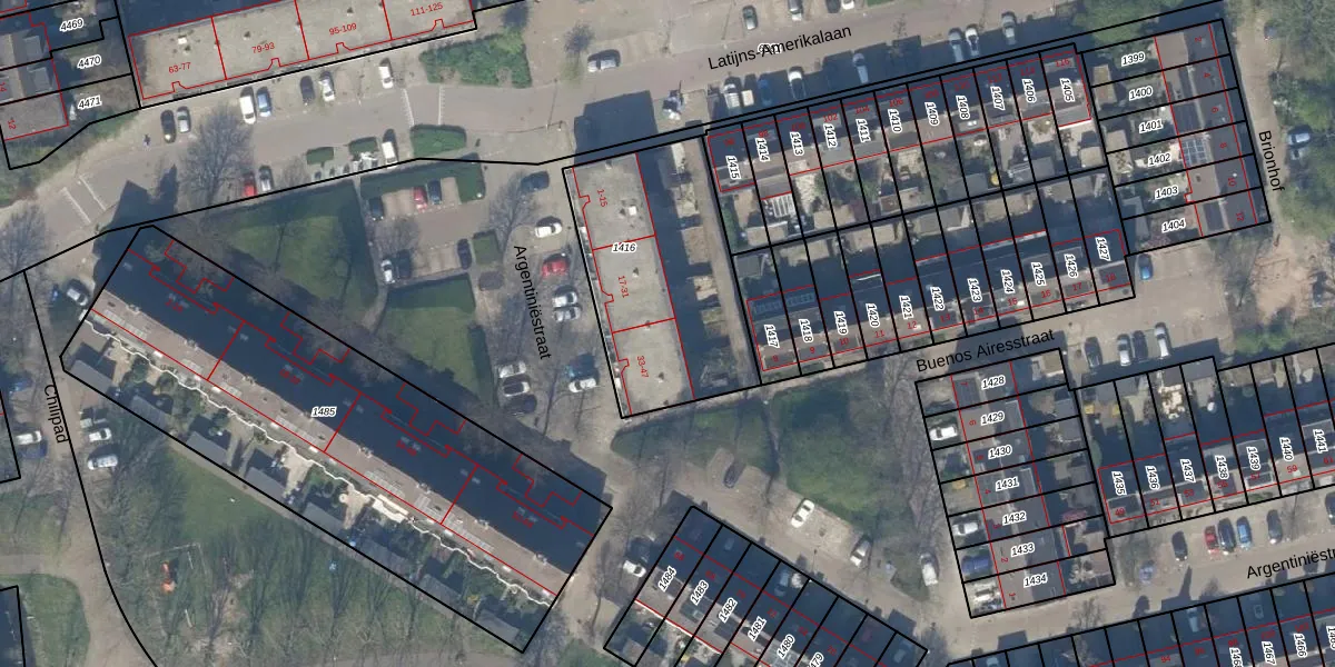Het perceel waarop Argentiniëstraat 43 staat heeft een oppervlakte van 828 m². Dit is een groot perceel. De perceeloppervlakte wordt geregistreerd door het Kadaster. Gedetailleerde informatie over de maten van dit perceel kunt u vinden in het rapport Kadastrale kaart met maatvoering van Argentiniëstraat 43.