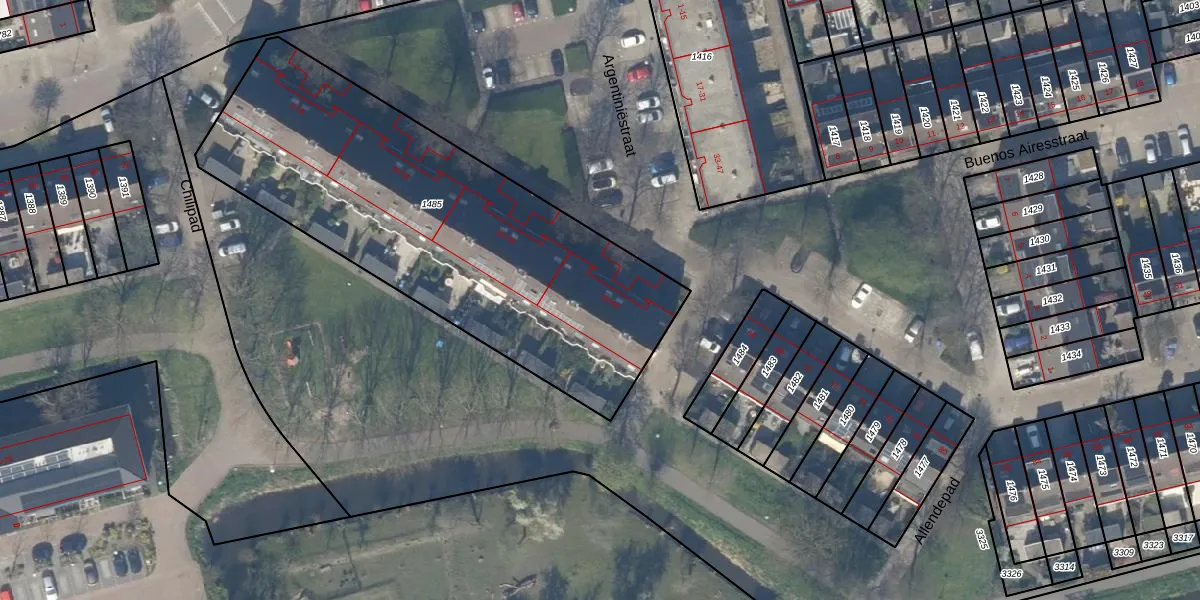 Het perceel waarop Argentiniëstraat 52 staat heeft een oppervlakte van 2094 m². Dit is een zeer groot perceel. De perceeloppervlakte wordt geregistreerd door het Kadaster. Gedetailleerde informatie over de maten van dit perceel kunt u vinden in het rapport Kadastrale kaart met maatvoering van Argentiniëstraat 52.
