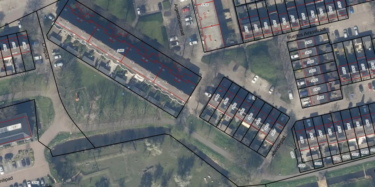 Het perceel waarop Argentiniëstraat 64 staat heeft een oppervlakte van 2094 m². Dit is een zeer groot perceel. De perceeloppervlakte wordt geregistreerd door het Kadaster. Gedetailleerde informatie over de maten van dit perceel kunt u vinden in het rapport Kadastrale kaart met maatvoering van Argentiniëstraat 64.