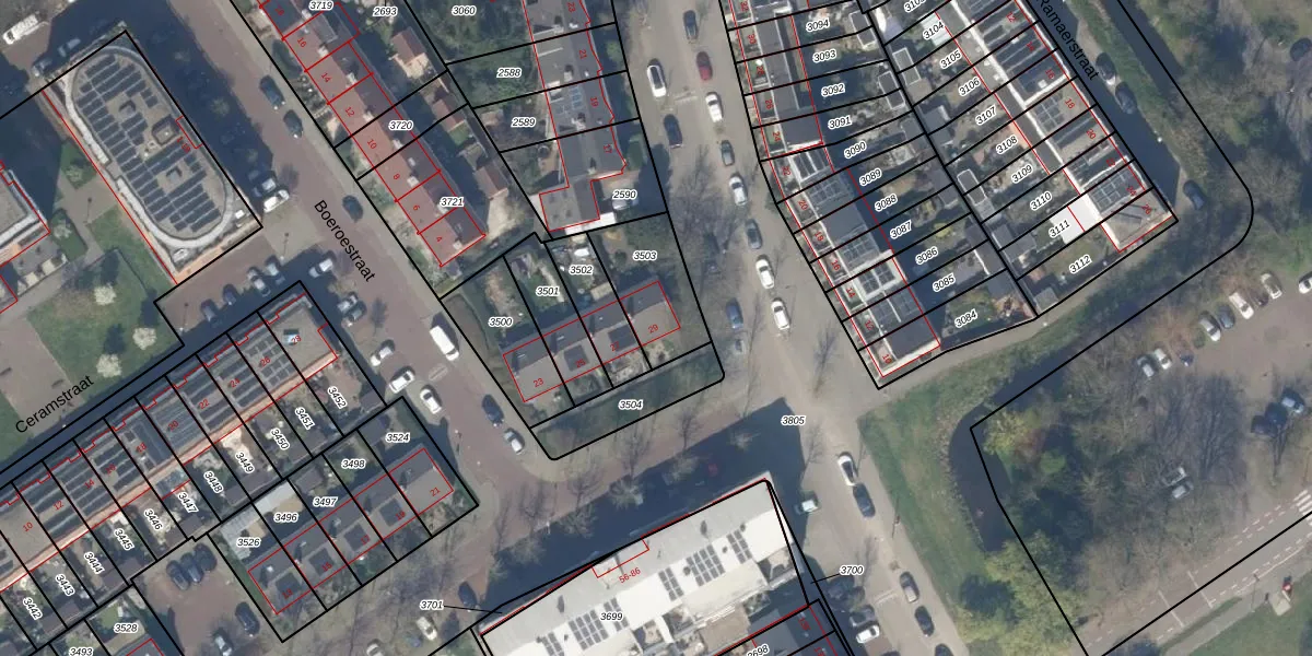 Arubastraat 29 is gelegen op kadastraal perceel DEL00N3503. Deze kadastrale aanduiding is uniek en wordt gebruikt door het Kadaster om eigendomsrechten en andere zakelijke rechten vast te leggen. Het perceel maakt onderdeel uit van de kadastrale gemeente Delft.