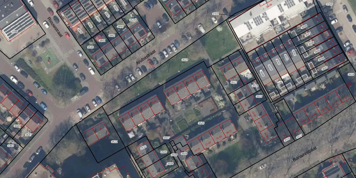 Arubastraat 30 is gelegen op kadastraal perceel DEL00N3520. Deze kadastrale aanduiding is uniek en wordt gebruikt door het Kadaster om eigendomsrechten en andere zakelijke rechten vast te leggen. Het perceel maakt onderdeel uit van de kadastrale gemeente Delft.