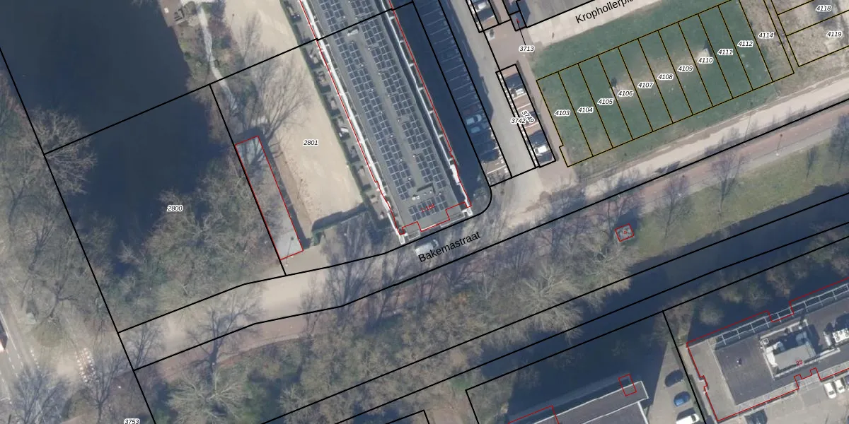 Het perceel waarop Bakemastraat 26 staat heeft een oppervlakte van 2690 m². Dit is een zeer groot perceel. De perceeloppervlakte wordt geregistreerd door het Kadaster. Gedetailleerde informatie over de maten van dit perceel kunt u vinden in het rapport Kadastrale kaart met maatvoering van Bakemastraat 26.