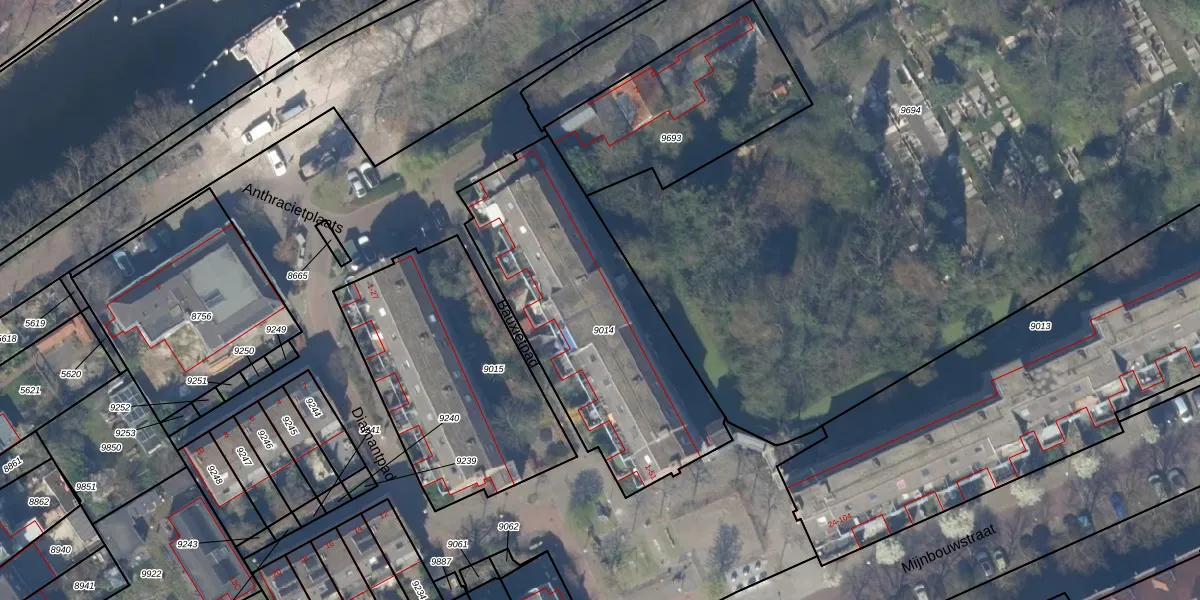 Het adres is gelegen op perceel 9014 in de sectie A en de kadastrale gemeente Delft. De kadastrale aanduiding is aldus DEL00-A-9014. De oppervlakte van het perceel is 1215 m². Dat is groter dan gemiddeld in Delft, waar de gemiddelde perceeloppervlakte op 923,41 m² ligt. Het kleinste perceel in de kadastrale gemeente is 0 m² groot. De grootste perceeloppervlakte is 64,1 ha. Op het perceel zijn 26 adressen aanwezig. De huidige grenzen van het perceel zijn digitaal in de Basisregistratie Kadaster (BRK) geregistreerd op 26-04-2012.