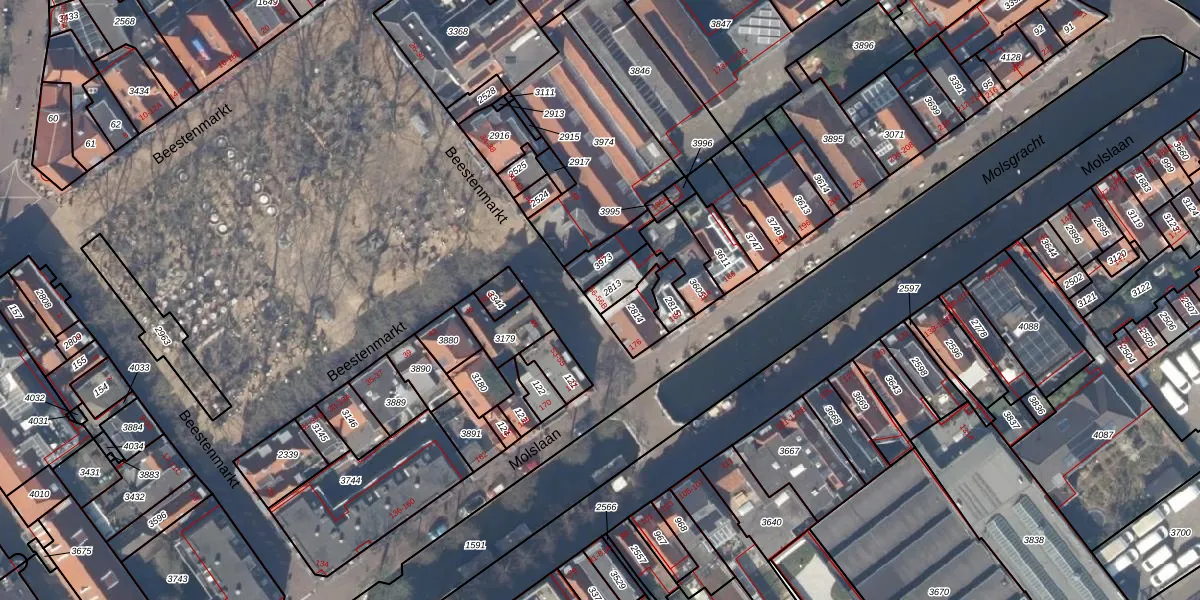 Het perceel waarop Beestenmarkt 56 staat heeft een oppervlakte van 61 m². Dit is een klein perceel. De perceeloppervlakte wordt geregistreerd door het Kadaster. Gedetailleerde informatie over de maten van dit perceel kunt u vinden in het rapport Kadastrale kaart met maatvoering van Beestenmarkt 56.