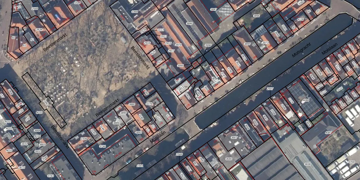 Beestenmarkt 56-B is gelegen op kadastraal perceel DEL00D2813. Deze kadastrale aanduiding is uniek en wordt gebruikt door het Kadaster om eigendomsrechten en andere zakelijke rechten vast te leggen. Het perceel maakt onderdeel uit van de kadastrale gemeente Delft.