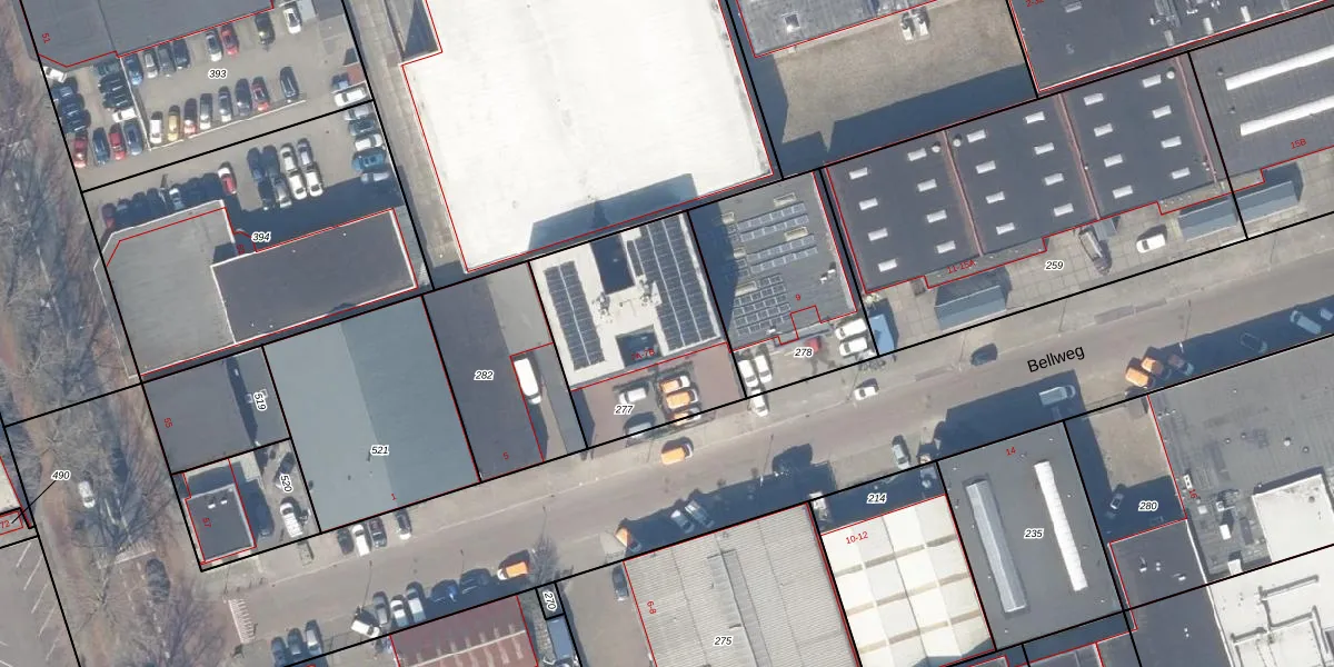 Het perceel waarop Bellweg 7-B staat heeft een oppervlakte van 739 m². Dit is een groot perceel. De perceeloppervlakte wordt geregistreerd door het Kadaster. Gedetailleerde informatie over de maten van dit perceel kunt u vinden in het rapport Kadastrale kaart met maatvoering van Bellweg 7-B.