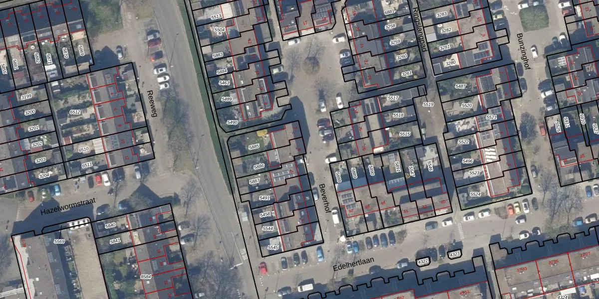 Gebruik de zoekbalk of klik op een perceel voor informatie over de adressen binnen dit perceel.