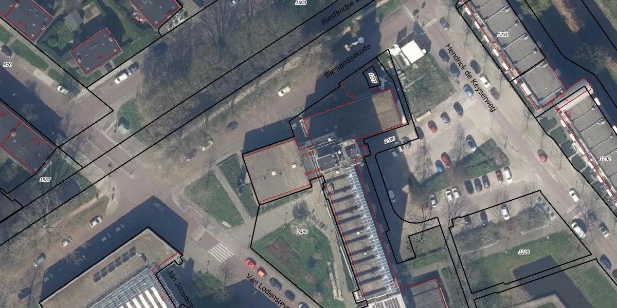 Het perceel waarop Bieslandsekade 132 staat heeft een oppervlakte van 2955 m². Dit is een zeer groot perceel. De perceeloppervlakte wordt geregistreerd door het Kadaster. Gedetailleerde informatie over de maten van dit perceel kunt u vinden in het rapport Kadastrale kaart met maatvoering van Bieslandsekade 132.