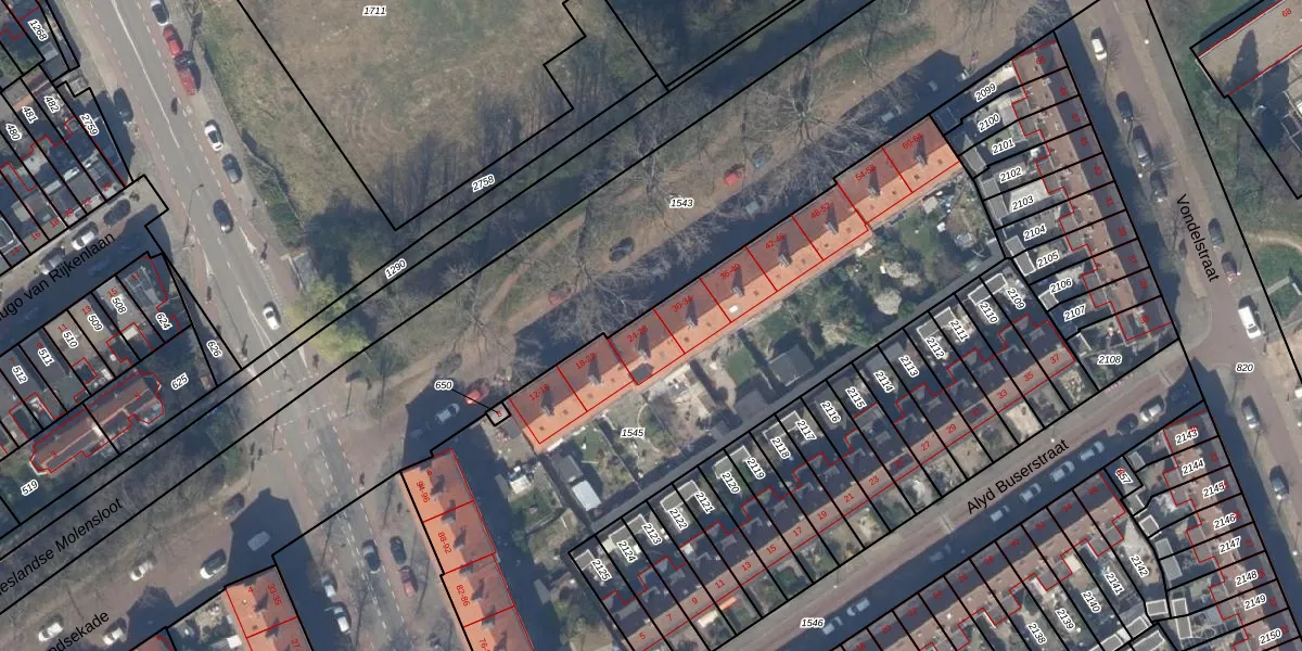 Het adres is gelegen op perceel 1545 in de sectie P en de kadastrale gemeente Delft. De kadastrale aanduiding is aldus DEL00-P-1545. De oppervlakte van het perceel is 2985 m². Dat is groter dan gemiddeld in Delft, waar de gemiddelde perceeloppervlakte op 924,62 m² ligt. De grootste perceeloppervlakte in de kadastrale gemeente is 64,1 ha. De kleinste oppervlakte bedraagt 0 m². Er zijn 44 adressen aanwezig op het perceel. De laatste wijziging in het de Basisregistratie Kadaster (BRK) was op 24-05-2007.