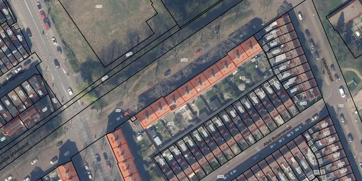 Het adres is gelegen op perceel 1545 in de sectie P en de kadastrale gemeente Delft. De kadastrale aanduiding is aldus DEL00-P-1545. De oppervlakte van het perceel is 2985 m². Dat is groter dan gemiddeld in Delft, waar de gemiddelde perceeloppervlakte op 924,62 m² ligt. Het kleinste perceel in de kadastrale gemeente is 0 m² groot. De grootste perceeloppervlakte is 64,1 ha. Op het perceel zijn 44 adressen aanwezig. De laatste wijziging in het de Basisregistratie Kadaster (BRK) was op 24-05-2007.