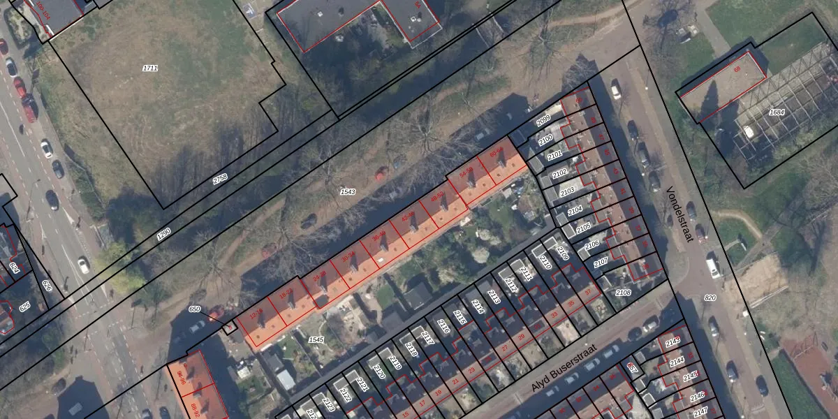 Het adres is gelegen op perceel 1545 in de sectie P en de kadastrale gemeente Delft. De kadastrale aanduiding is aldus DEL00-P-1545. De oppervlakte van het perceel is 2985 m². Dat is groter dan gemiddeld in Delft, waar de gemiddelde perceeloppervlakte op 924,62 m² ligt. De grootste perceeloppervlakte in de kadastrale gemeente is 64,1 ha. De kleinste oppervlakte bedraagt 0 m². Er zijn 44 adressen aanwezig op het perceel. De laatste wijziging in het de Basisregistratie Kadaster (BRK) was op 24-05-2007.