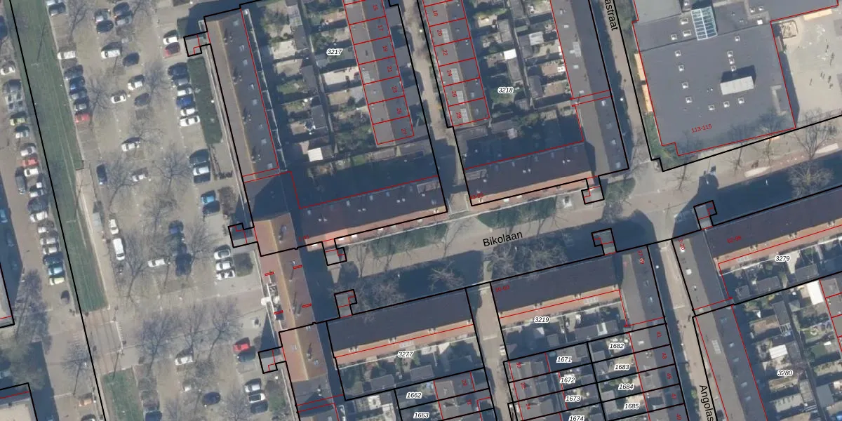 Het perceel waarop Bikolaan 39 staat heeft een oppervlakte van 2738 m². Dit is een zeer groot perceel. De perceeloppervlakte wordt geregistreerd door het Kadaster. Gedetailleerde informatie over de maten van dit perceel kunt u vinden in het rapport Kadastrale kaart met maatvoering van Bikolaan 39.