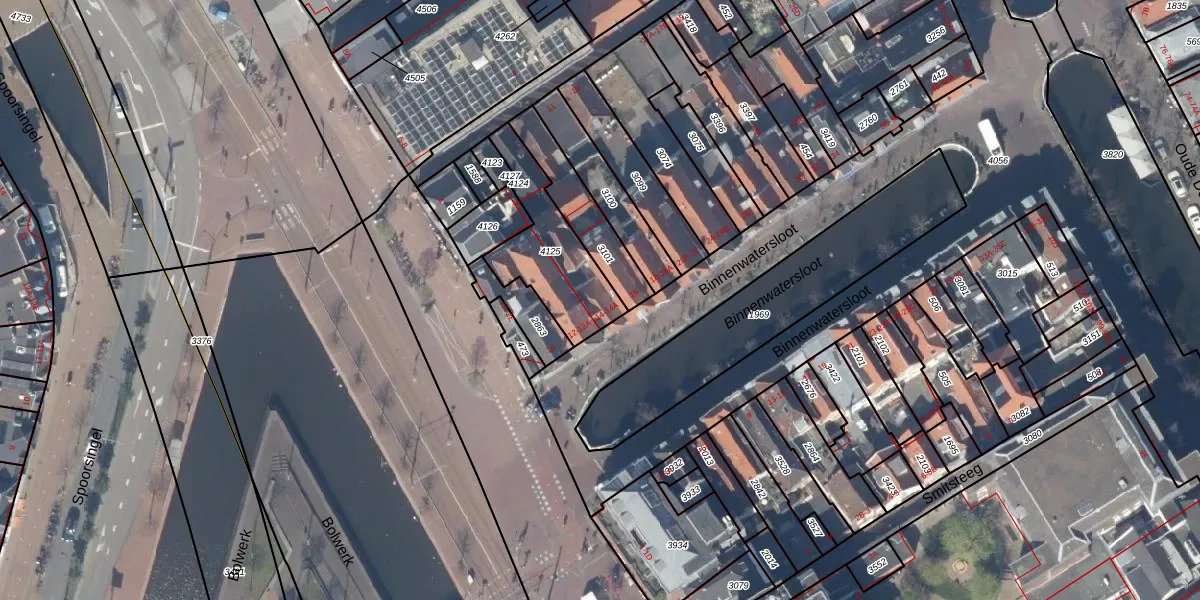 Binnenwatersloot 14-A is gelegen op kadastraal perceel DEL00D4125. Deze kadastrale aanduiding is uniek en wordt gebruikt door het Kadaster om eigendomsrechten en andere zakelijke rechten vast te leggen. Het perceel maakt onderdeel uit van de kadastrale gemeente Delft.