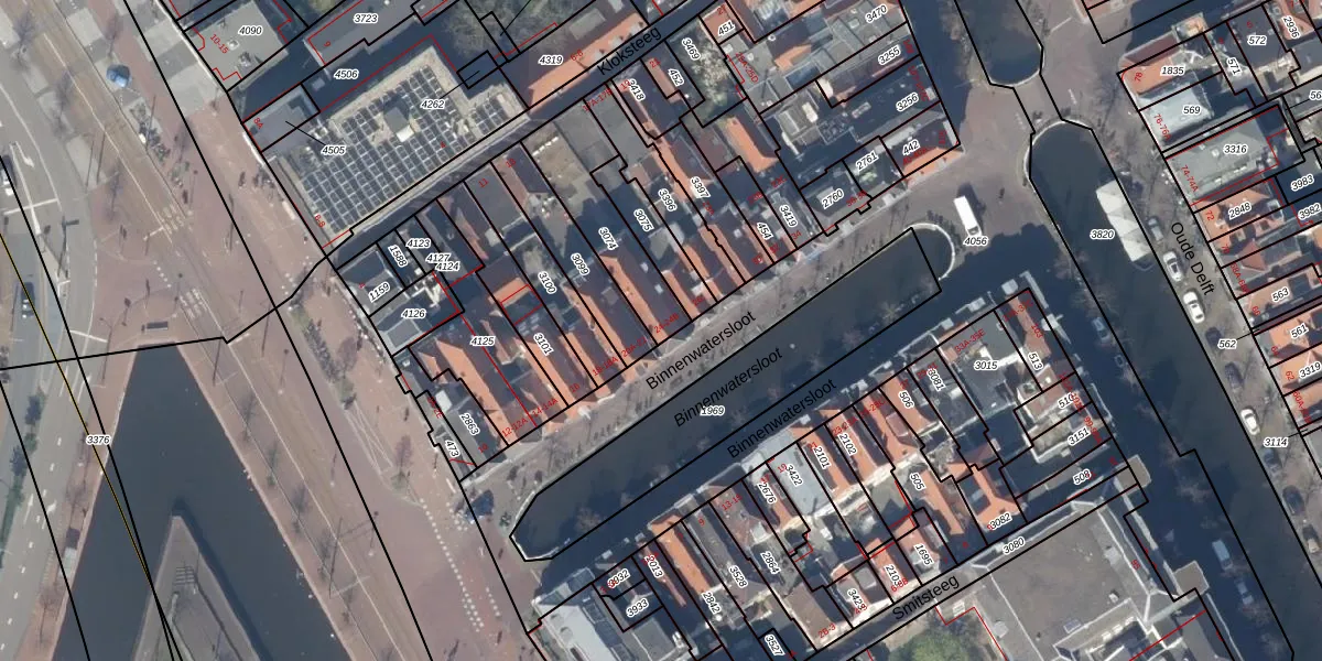 Binnenwatersloot 24 is gelegen op kadastraal perceel DEL00D3074. Deze kadastrale aanduiding is uniek en wordt gebruikt door het Kadaster om eigendomsrechten en andere zakelijke rechten vast te leggen. Het perceel maakt onderdeel uit van de kadastrale gemeente Delft.