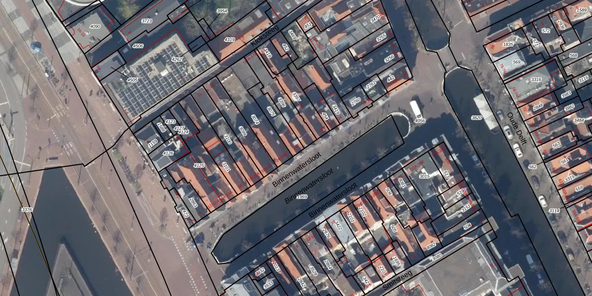 Binnenwatersloot 26 is gelegen op kadastraal perceel DEL00D3075. Deze kadastrale aanduiding is uniek en wordt gebruikt door het Kadaster om eigendomsrechten en andere zakelijke rechten vast te leggen. Het perceel maakt onderdeel uit van de kadastrale gemeente Delft.