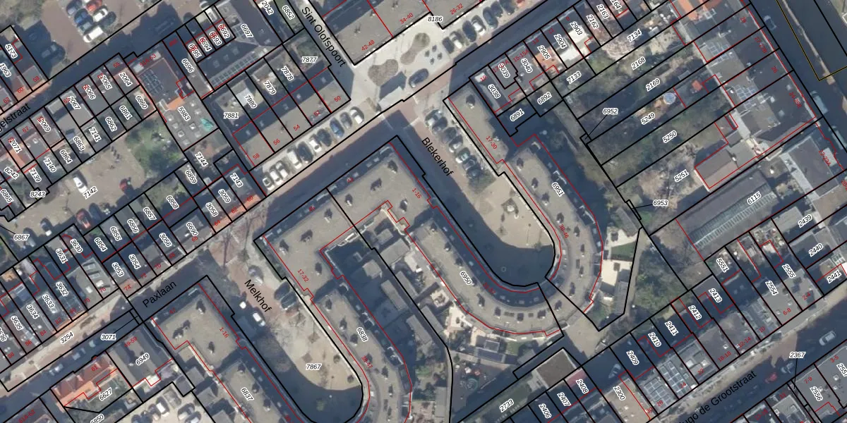 Het perceel waarop Blekerhof 11 staat heeft een oppervlakte van 1377 m². Dit is een zeer groot perceel. De perceeloppervlakte wordt geregistreerd door het Kadaster. Gedetailleerde informatie over de maten van dit perceel kunt u vinden in het rapport Kadastrale kaart met maatvoering van Blekerhof 11.