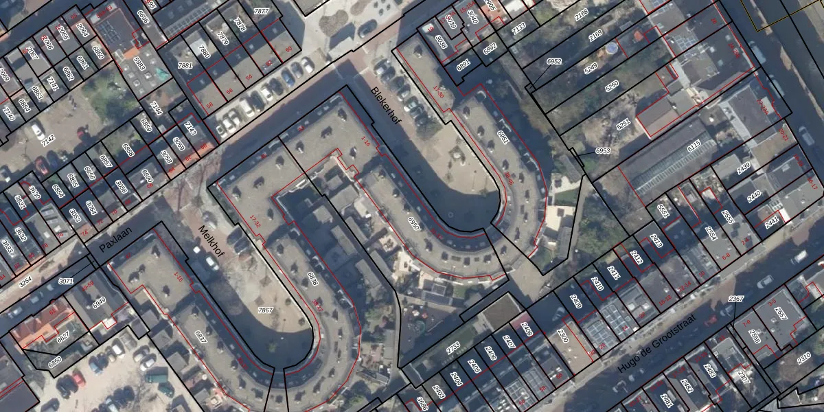 Het perceel waarop Blekerhof 33 staat heeft een oppervlakte van 1377 m². Dit is een zeer groot perceel. De perceeloppervlakte wordt geregistreerd door het Kadaster. Gedetailleerde informatie over de maten van dit perceel kunt u vinden in het rapport Kadastrale kaart met maatvoering van Blekerhof 33.
