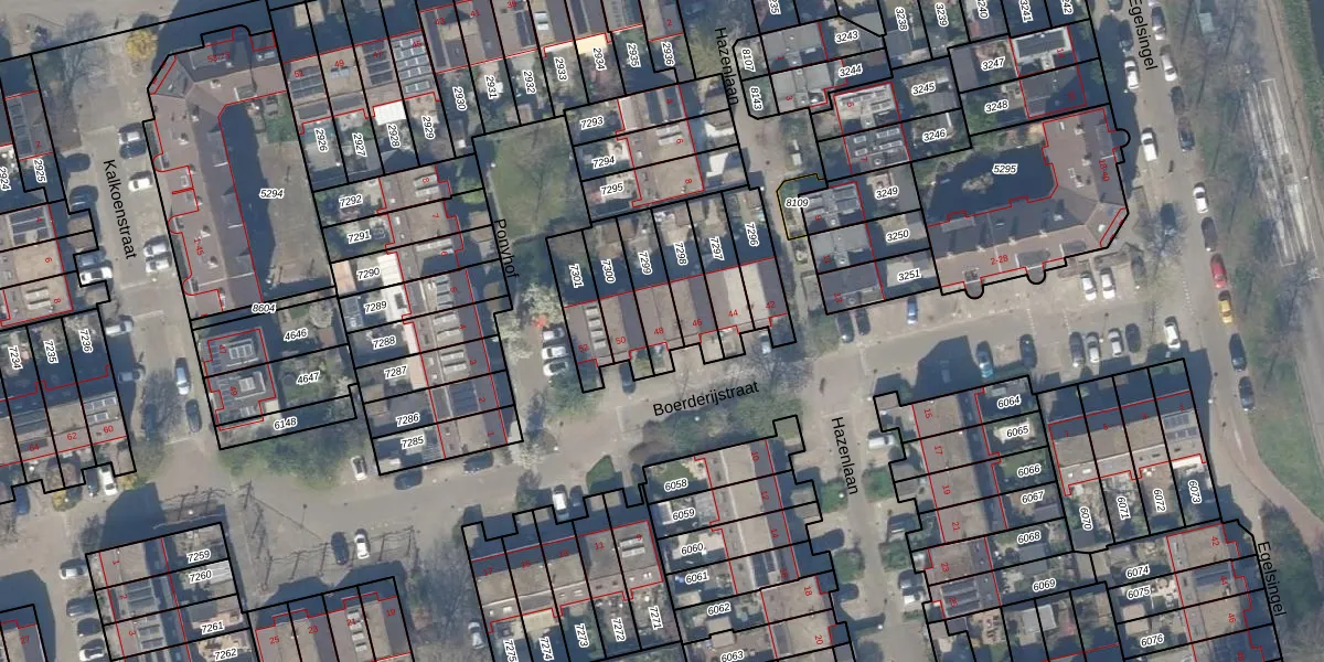 Het adres is gelegen op perceel 7299 in de sectie R en de kadastrale gemeente Delft. De kadastrale aanduiding is aldus DEL00-R-7299. De gemiddelde perceelgrootte in Delft is 923,41 m². Dit perceel is kleiner: de perceeloppervlakte bedraagt 128 m². De grootste perceeloppervlakte in de kadastrale gemeente is 64,1 ha. De kleinste oppervlakte bedraagt 0 m². Er zijn geen andere adressen aanwezig op het perceel. In de Basisregistratie Kadaster (BRK) werden de grenzen van het perceel geregistreerd op 29-06-2005.