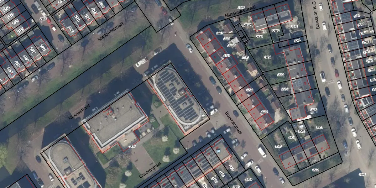 Boeroestraat 13 is gelegen op kadastraal perceel DEL00N3432. Deze kadastrale aanduiding is uniek en wordt gebruikt door het Kadaster om eigendomsrechten en andere zakelijke rechten vast te leggen. Het perceel maakt onderdeel uit van de kadastrale gemeente Delft.