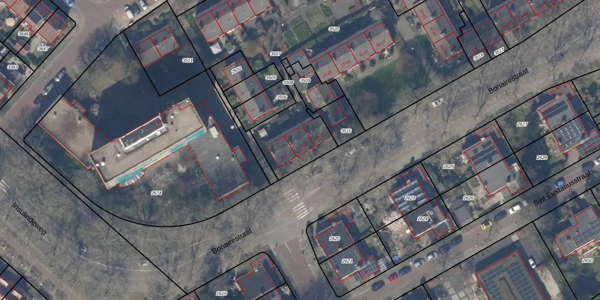 Bonairestraat 11 is gelegen op kadastraal perceel DEL00N3520. Deze kadastrale aanduiding is uniek en wordt gebruikt door het Kadaster om eigendomsrechten en andere zakelijke rechten vast te leggen. Het perceel maakt onderdeel uit van de kadastrale gemeente Delft.