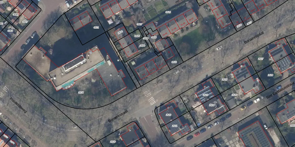 Bonairestraat 9 is gelegen op kadastraal perceel DEL00N3520. Deze kadastrale aanduiding is uniek en wordt gebruikt door het Kadaster om eigendomsrechten en andere zakelijke rechten vast te leggen. Het perceel maakt onderdeel uit van de kadastrale gemeente Delft.