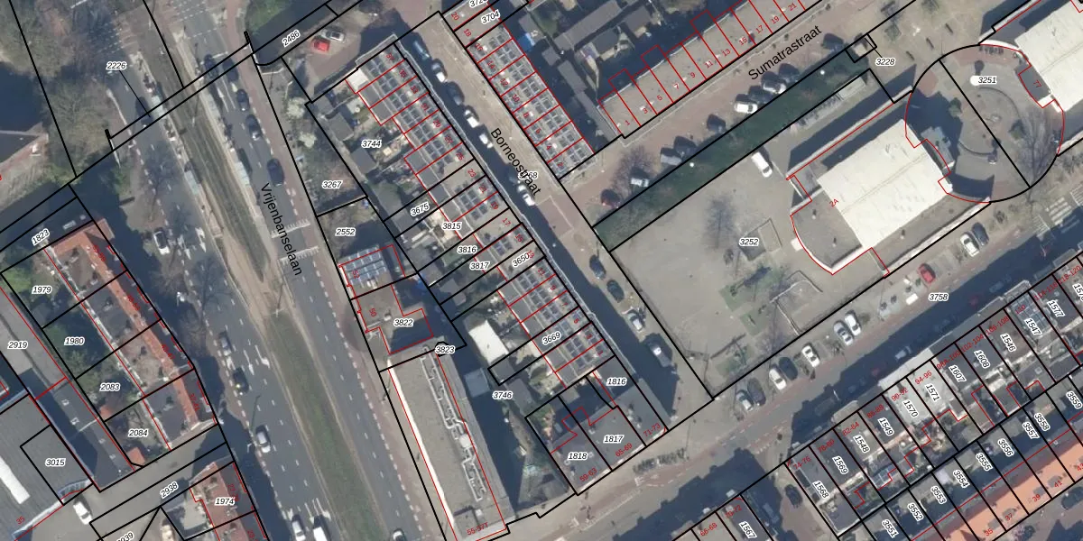 Het perceel waarop Borneostraat 11 staat heeft een oppervlakte van 1159 m². Dit is een zeer groot perceel. De perceeloppervlakte wordt geregistreerd door het Kadaster. Gedetailleerde informatie over de maten van dit perceel kunt u vinden in het rapport Kadastrale kaart met maatvoering van Borneostraat 11.