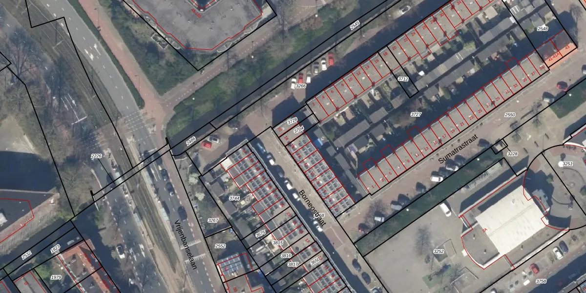 Borneostraat 16 is gelegen op kadastraal perceel DEL00N3727. Deze kadastrale aanduiding is uniek en wordt gebruikt door het Kadaster om eigendomsrechten en andere zakelijke rechten vast te leggen. Het perceel maakt onderdeel uit van de kadastrale gemeente Delft.