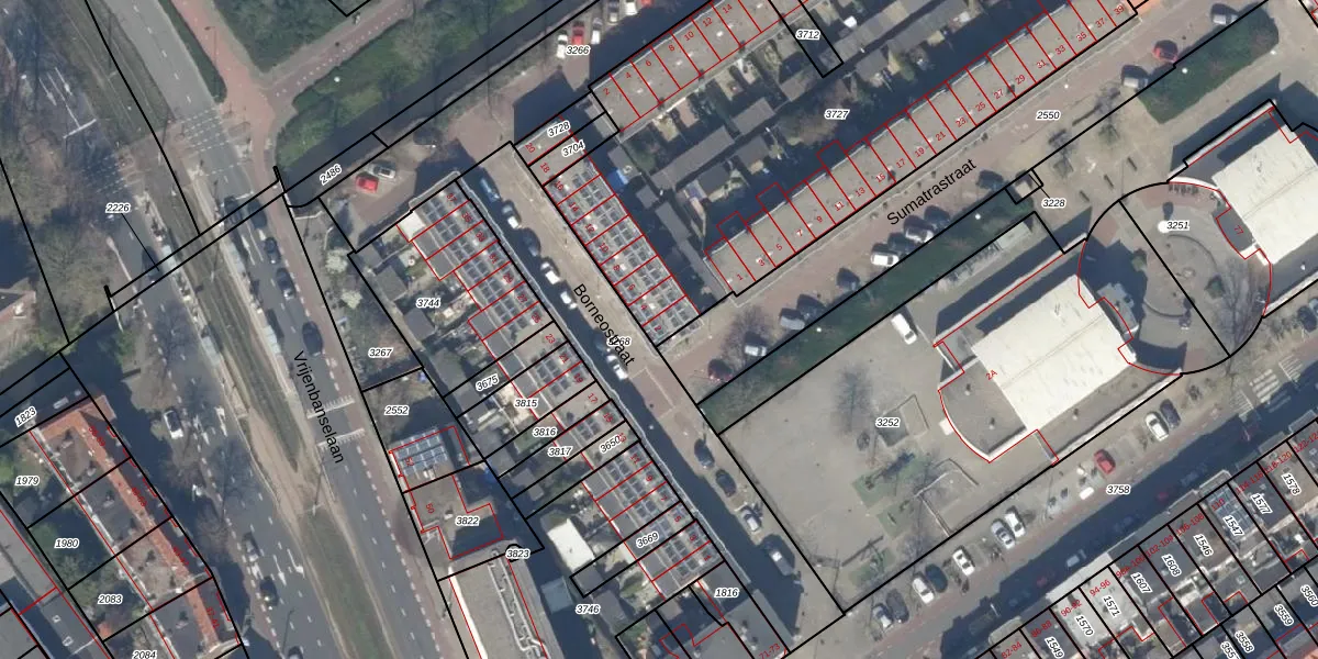 Het perceel waarop Borneostraat 2 staat heeft een oppervlakte van 3261 m². Dit is een zeer groot perceel. De perceeloppervlakte wordt geregistreerd door het Kadaster. Gedetailleerde informatie over de maten van dit perceel kunt u vinden in het rapport Kadastrale kaart met maatvoering van Borneostraat 2.