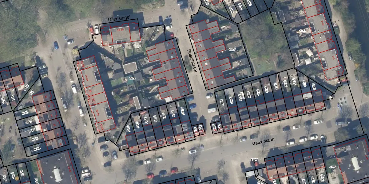 Het perceel waarop Bosuilstraat 1 staat heeft een oppervlakte van 2675 m². Dit is een zeer groot perceel. De perceeloppervlakte wordt geregistreerd door het Kadaster. Gedetailleerde informatie over de maten van dit perceel kunt u vinden in het rapport Kadastrale kaart met maatvoering van Bosuilstraat 1.
