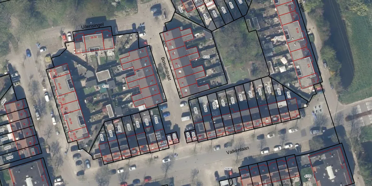 Bosuilstraat 2 is gelegen op kadastraal perceel DEL00R4722. Deze kadastrale aanduiding is uniek en wordt gebruikt door het Kadaster om eigendomsrechten en andere zakelijke rechten vast te leggen. Het perceel maakt onderdeel uit van de kadastrale gemeente Delft.