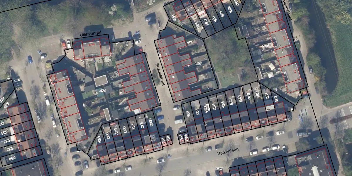 Het perceel waarop Bosuilstraat 4 staat heeft een oppervlakte van 1025 m². Dit is een zeer groot perceel. De perceeloppervlakte wordt geregistreerd door het Kadaster. Gedetailleerde informatie over de maten van dit perceel kunt u vinden in het rapport Kadastrale kaart met maatvoering van Bosuilstraat 4.