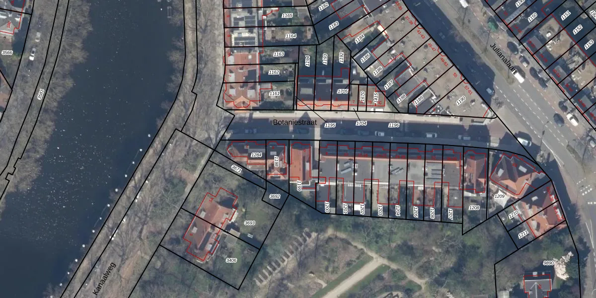 Het perceel waarop Botaniestraat 6 staat heeft een oppervlakte van 202 m². Dit is een middelgroot perceel. De perceeloppervlakte wordt geregistreerd door het Kadaster. Gedetailleerde informatie over de maten van dit perceel kunt u vinden in het rapport Kadastrale kaart met maatvoering van Botaniestraat 6.