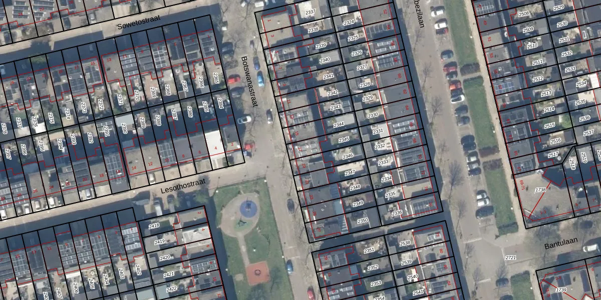 Gebruik de zoekbalk of klik op een perceel voor informatie over de adressen binnen dit perceel.