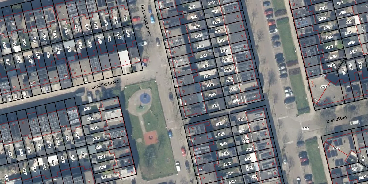 Botswanastraat 23 is gelegen op kadastraal perceel DEL00S2348. Deze kadastrale aanduiding is uniek en wordt gebruikt door het Kadaster om eigendomsrechten en andere zakelijke rechten vast te leggen. Het perceel maakt onderdeel uit van de kadastrale gemeente Delft.